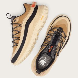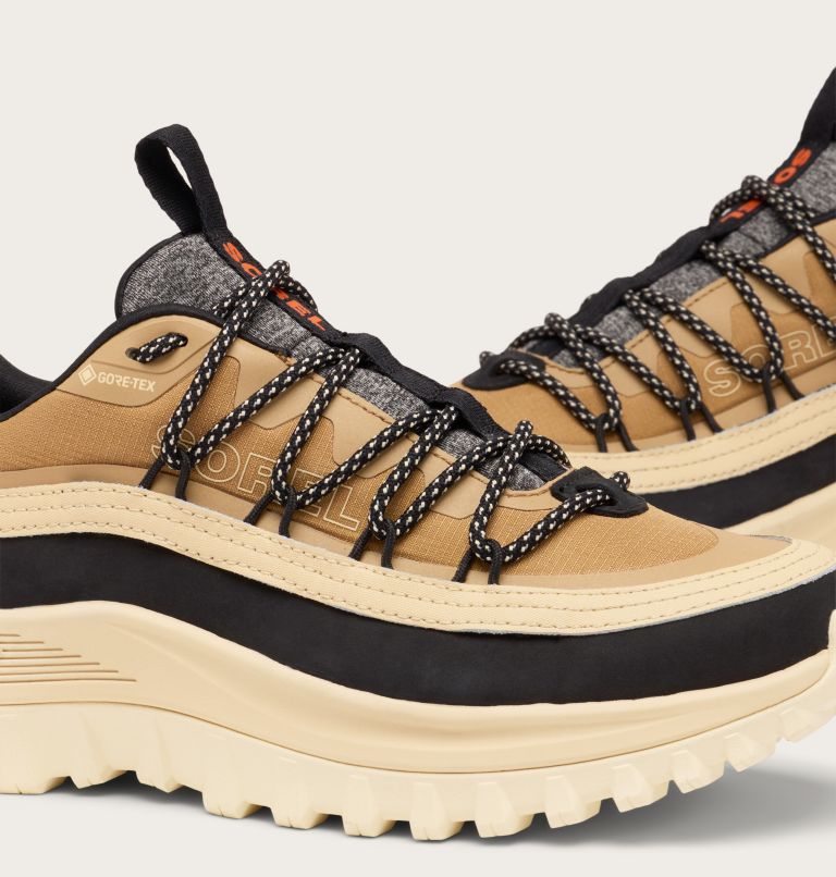 - UPPER: Patented Gore-Tex™ waterproof construction. Leather and textile upper. TPU abrasion resistant material on upper and eyerow. Transparent molded TPU heel pull with SOREL logo. Round flecked lace with SOREL branded aglets.
