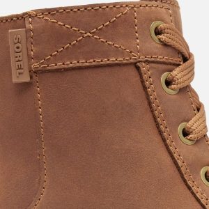 - UPPER: Waterproof full grain leather upper. Heel pull tab. Lace closure. Metal eyelets. Textile and synthetic lining. Laces are not waterproof.