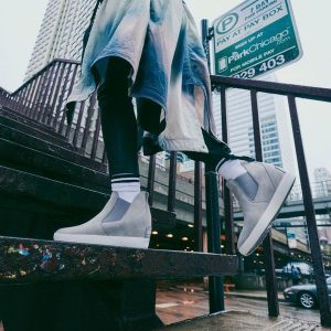 - UPPER: Avilable in waterproof suede or lizard embossed leather. Heel webbing loop. Textile lining..