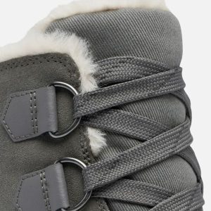 - UPPER: Waterproof suede upper with PU coated leather mudguard and heel overlay. Canvas tongue. Faux fur collar with microfleece lining. OutDry waterproof construction. Laces are not waterproof.
