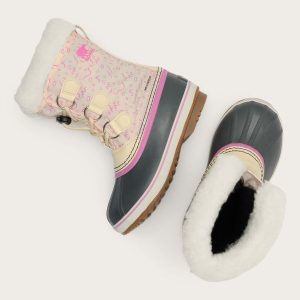 Waterproof nylon upper and seam-sealed construction with cozy insulation. Removable, washable liner with sherpa collar. Toggled laces for easy wear.