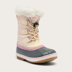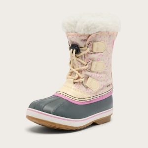 Waterproof nylon upper and seam-sealed construction with cozy insulation. Removable, washable liner with sherpa collar. Toggled laces for easy wear.